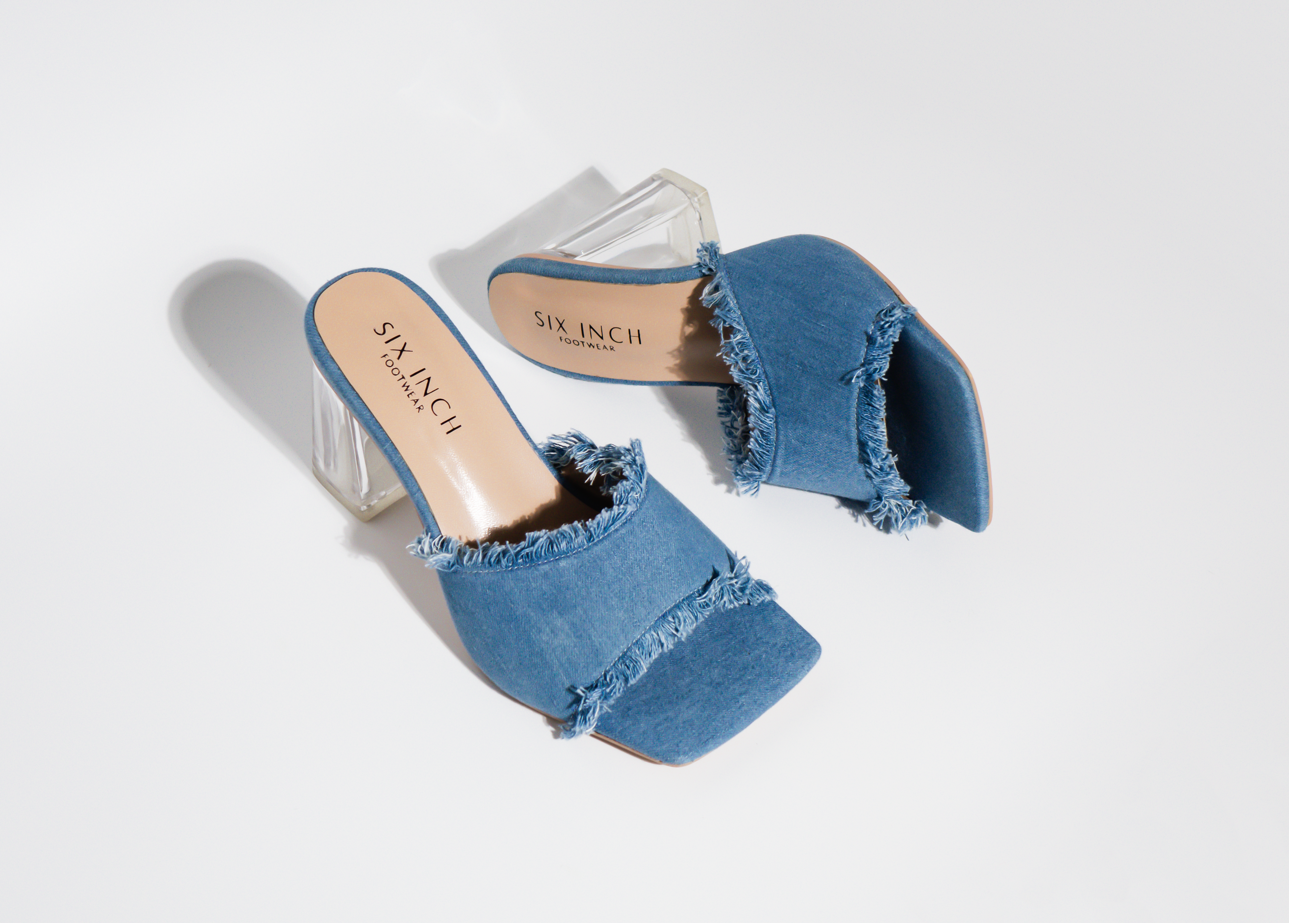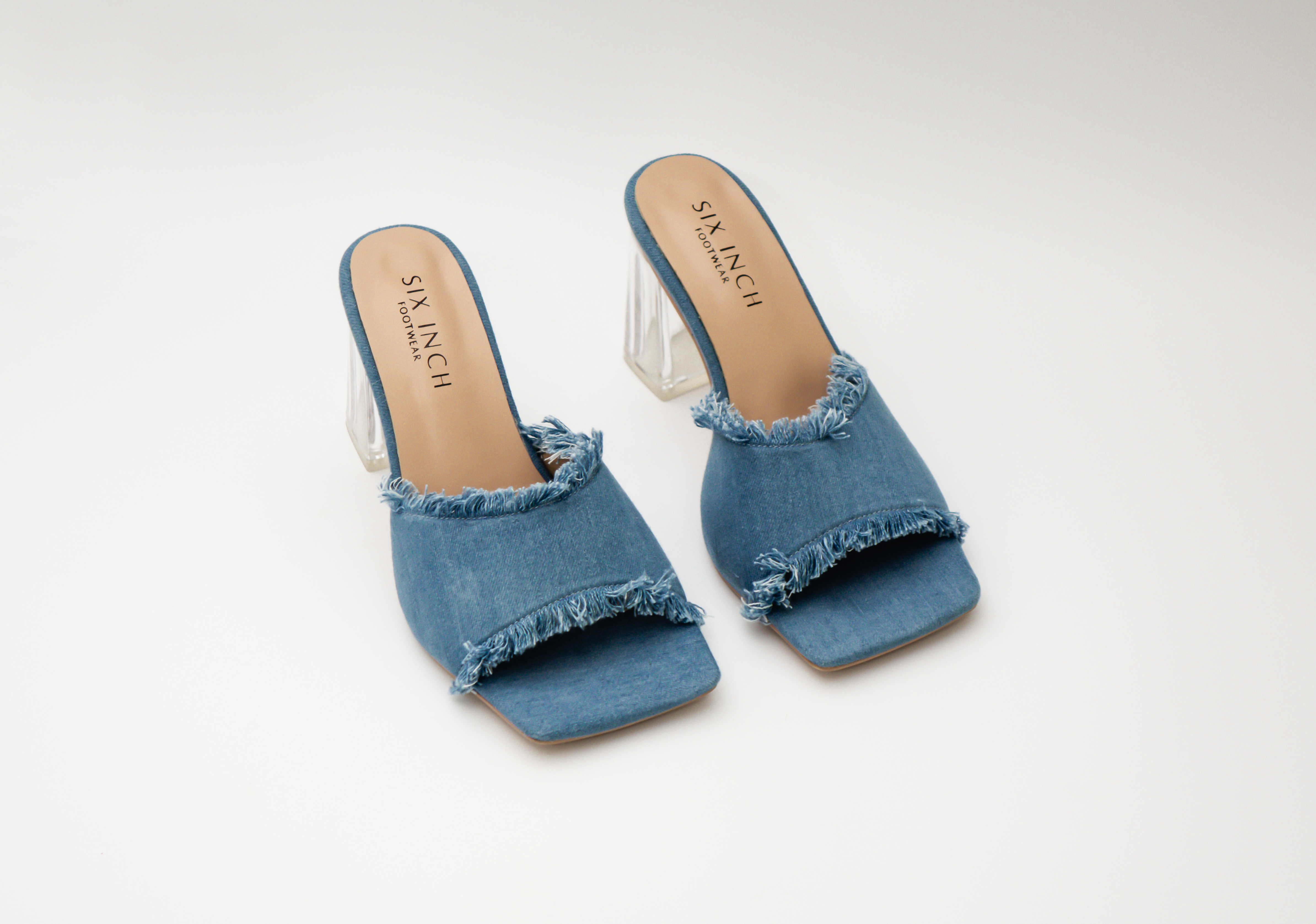 With a wide fit and easy slip on design, these denim heels are sure to turn heads. The clear heel and open square toe add a touch of flair, Natasha is here to make a statement.