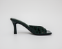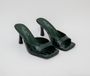 Introducing Valore mule in emerald green by SIX INCH Footwear. The emerald green faux snake print heel of your dreams.